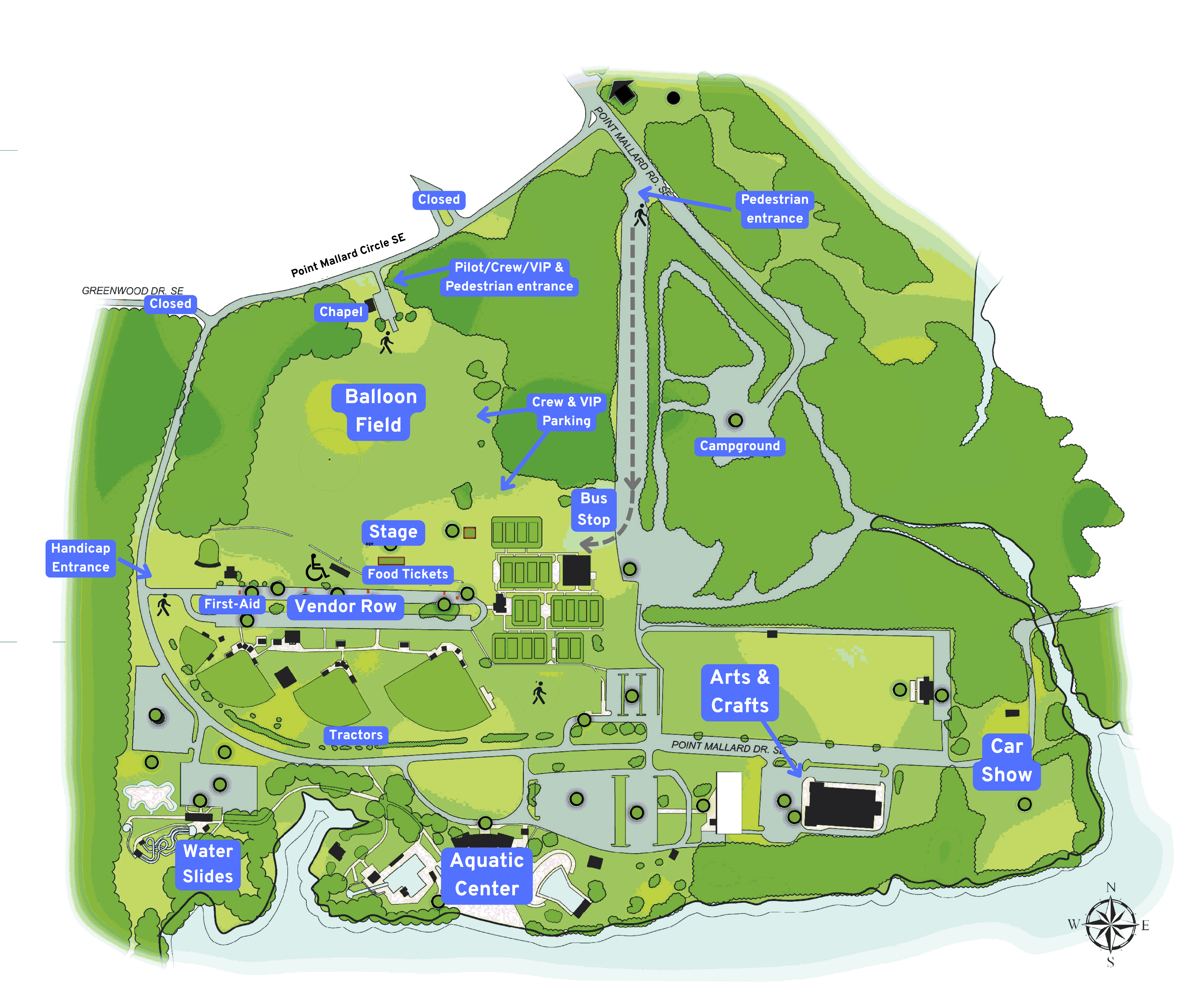 Please be aware that GPS directions will likely guide you through residential neighborhoods to blocked streets during the event. To avoid this, ensure that you enter via Church Street and Point Mallard Drive.